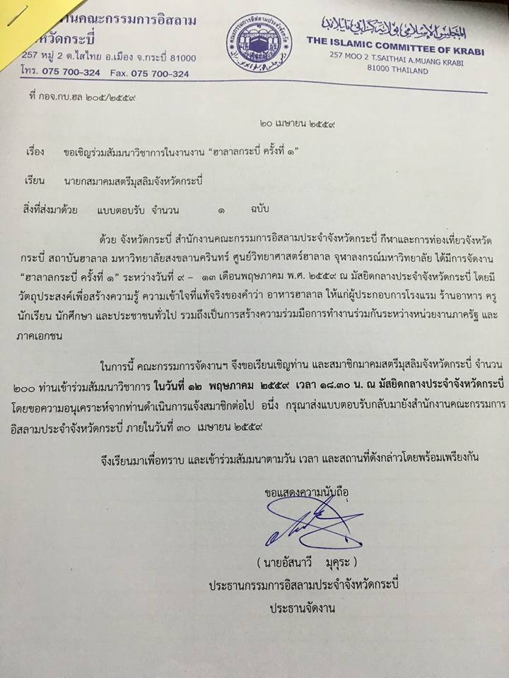 ขอเชิญคณะกรรมการ และสมาชิก ประชาชนที่สนใจ เข้าร่วมสัมนาวิชาการ ซึ่งจัดขึ้น ณ มัสยิดกลางจังหวัดกระบี่ ในวันที่ 12 พฤษภาคา 2559 เวลา 18.30 น. ...
